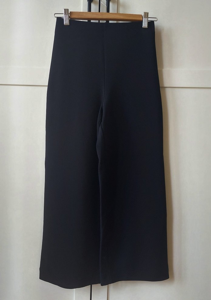 H&M geniş paça siyah pantolon, beli lastikli. bilek hizasında (boyum 1.65) Dokusu tok, ince değil. Bir kere giyildi.