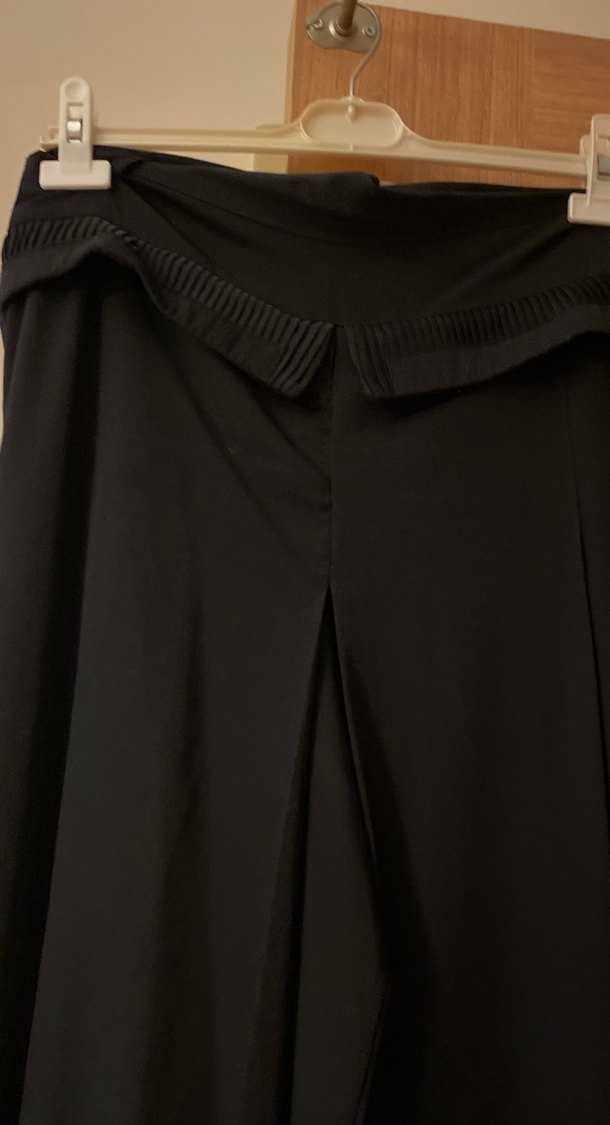 Siyah, pileli midi hamile eteği, ipeksi kumaşla rahat bir normal kesim sunar. Ofis için uygun, modaya uygun gotik ve avangart tarzda.