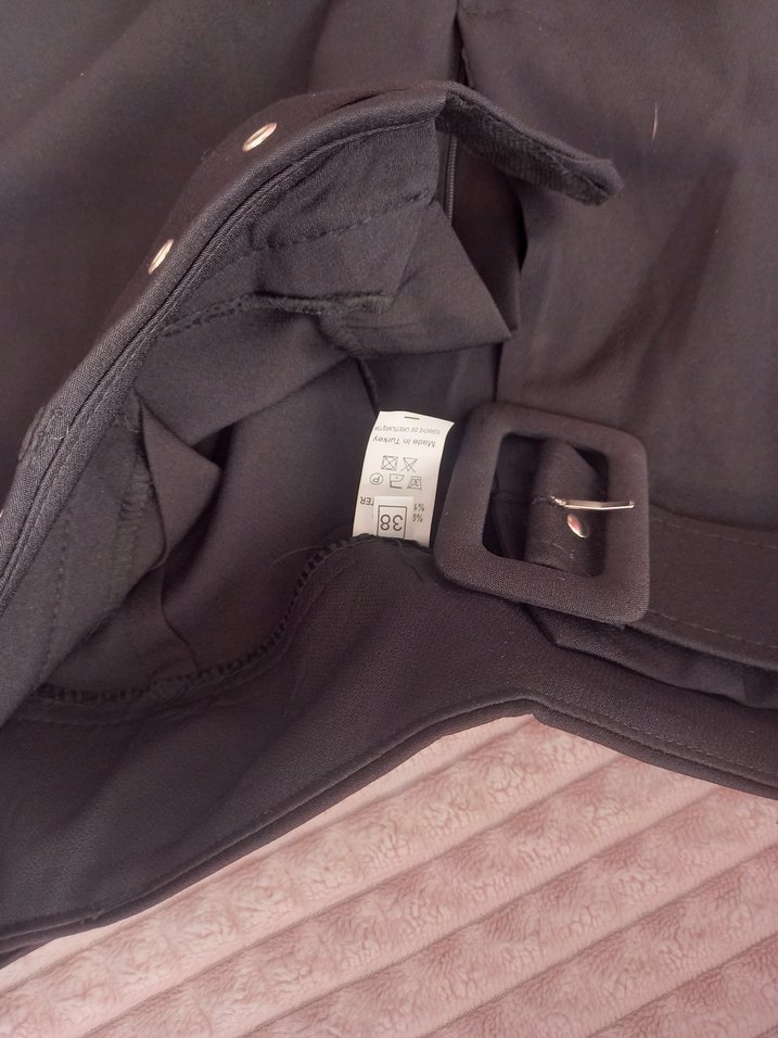 Siyah biker tarzı, kayışlı tokalı ve sıcak tutan yumuşak kumaştan yapılmış diz koruyucusu. Koyu ve desensiz avant-garde tasarım.