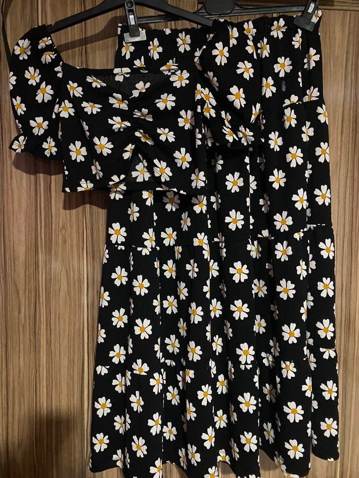 Etek ve büstiyer takım, bir sıkıntısı yok. Ön kısmı kısa geldiği için ben büstiyerini tersinden giyiyordum.
