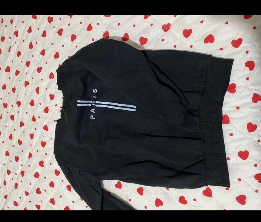 Siyah, uzun kollu ve bisiklet yakalı bu fitted sweatshirt, Paris baskısı ve fermuar detayıyla günlük kullanıma uygun rahat ve yumuşak dokudadır.