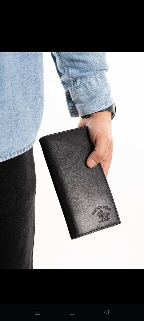 Siyah renkli, parlak yüzeyli ve baskılı desenli erkek cüzdanı, iş ve sokak modası tarzını bir araya getirir. Trendy casual görünüm için idealdir.