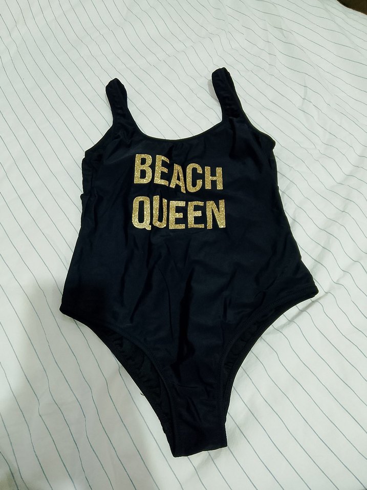 Parlak baskılı 'BEACH QUEEN' yazılı, siyah, kolsuz ve vücuda oturan bu mayo, cesur sokak tarzı ve zahmetsiz şıklığı bir araya getirir. ️