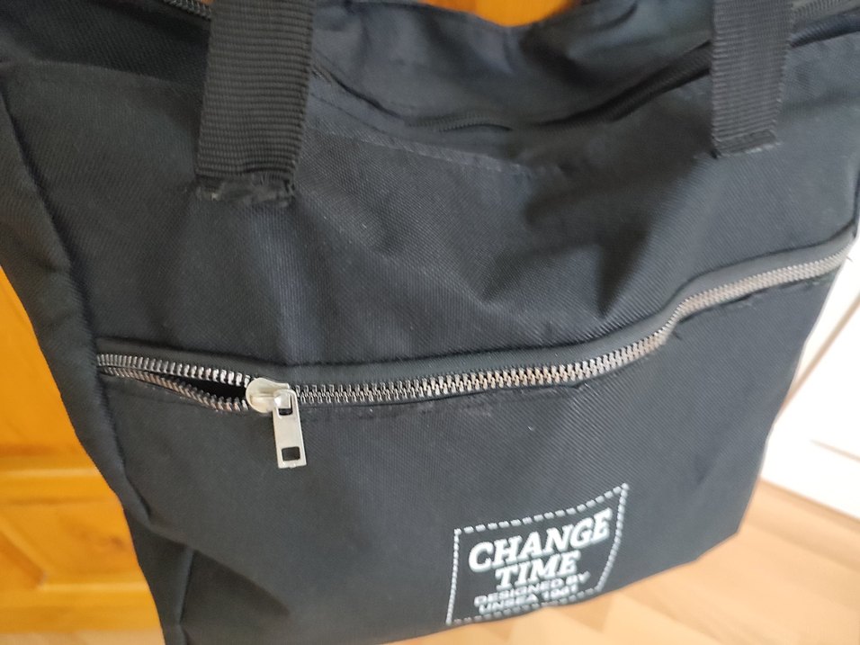 Siyah renkli, parlak baskılı kol çantasıdır. Önünde fermuarlı cep ve "CHANGE TIME" yazılı etiketi yok kullanılabilir .