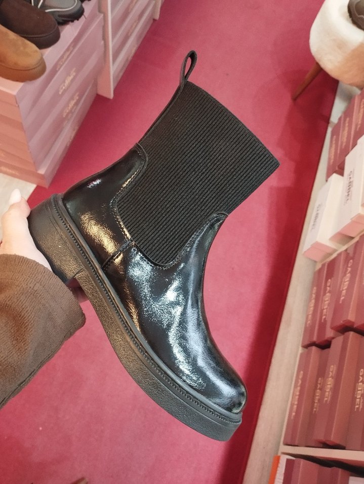 Siyah Parlak Blok Topuklu Kadın Bot