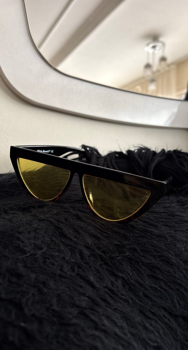 Siyah Parlak Çerçeveli Sarı Retro Gözlük