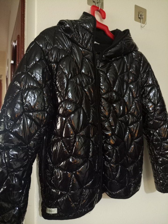 Siyah parlak yüzeye sahip, NK marka fermuarlı ve kesik yaka detaylı çocuk kışlık mont. Strappy kollu, vücuda oturan ve midi boyda, gündelik kullanım için uygundur. 2 , 3 defa giyildi.