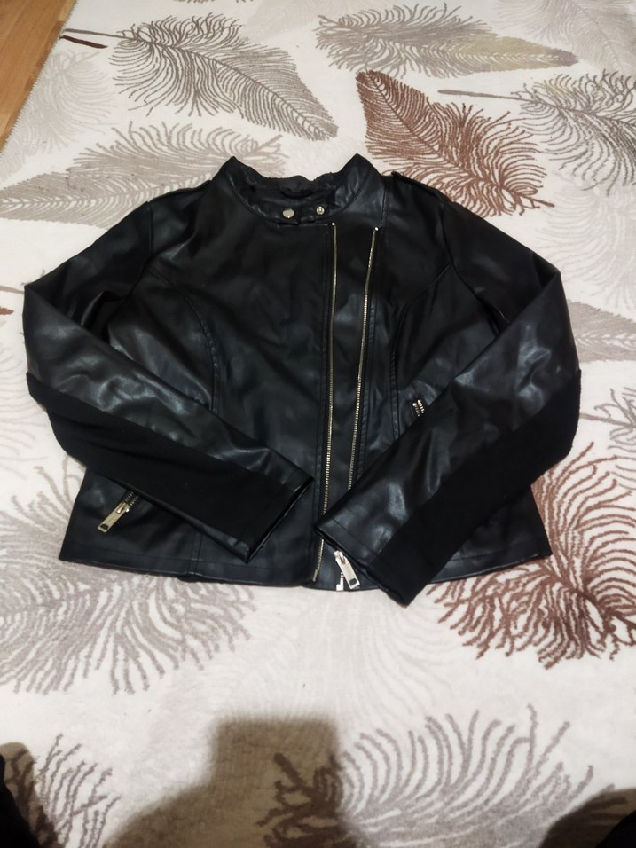 Siyah Parlak Deri Biker Ceket Kadın s beden DeFacto ölçü resmde