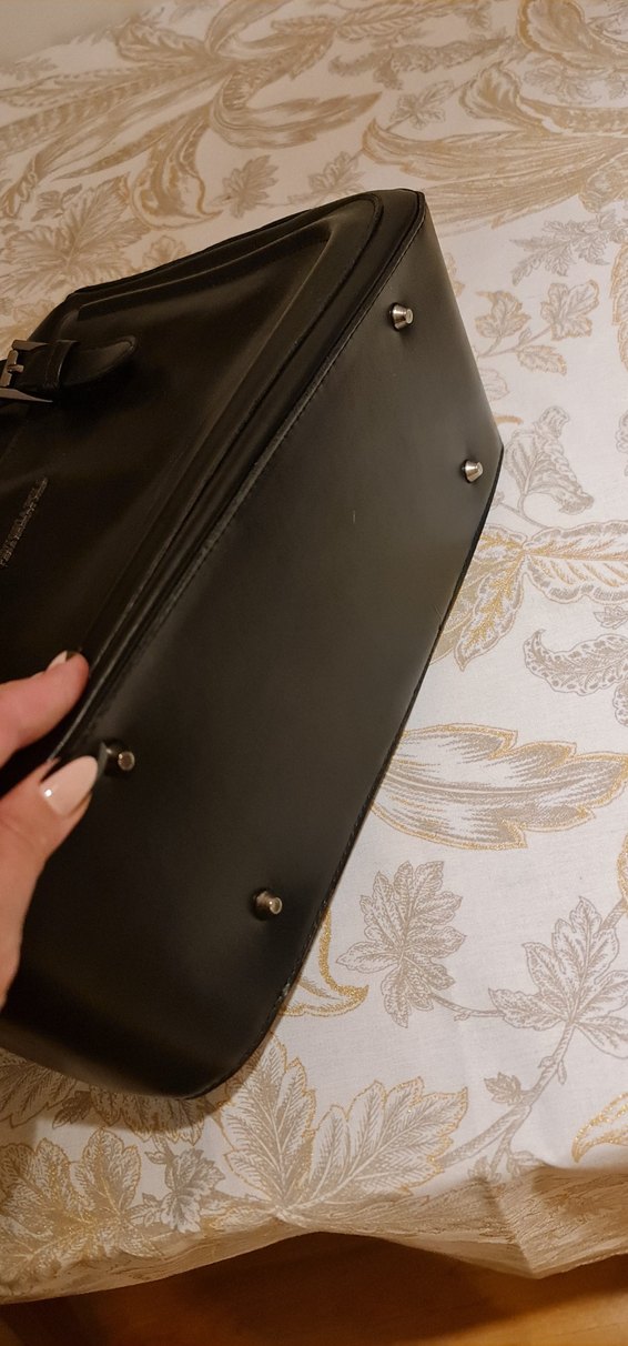 Siyah parlak deri, fermuarlı kadın çanta. İş ortamı için klasik ve gotik tarzda, desensiz ve şık tasarım.