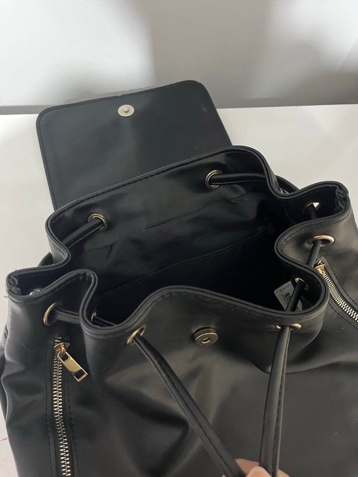 Siyah Parlak Deri Fermuarlı Sırt Çantası