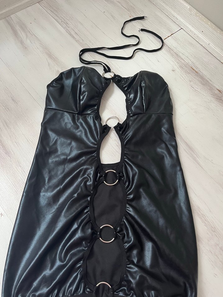 Siyah Parlak deri görünümlü fantezi gecelik/ elbise