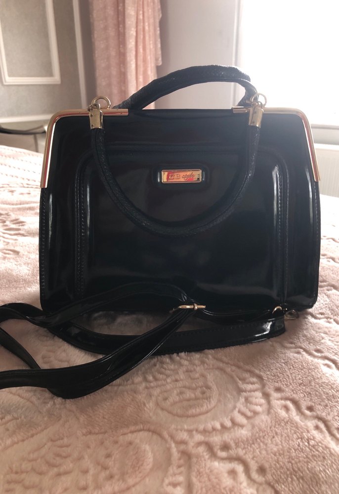 Siyah, parlak deri kullanılarak yapılmış, desensiz ve klasik tasarımlı kadın çantasıdır. Parlak yüzeyi ve yapılı sapıyla günlük kullanıma uygundur. ✨