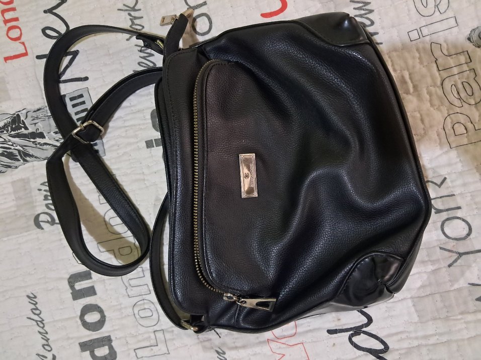 Siyah parlak deri kadın çantası, tokalı ve ön cep fermuarlı tasarıma sahiptir. Trendy casual ve Paris tarzına uygundur.