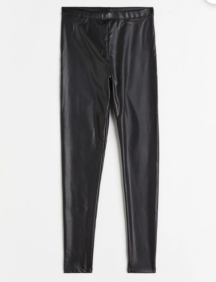 Siyah Parlak Deri Kadın Tayt