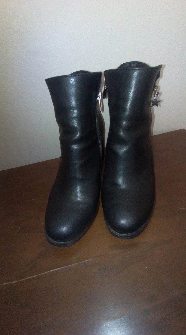 Yüksek topuklu, tokalı siyah parlak deri kadın botları, gotik tarzda günlük kullanıma uygun. ✨