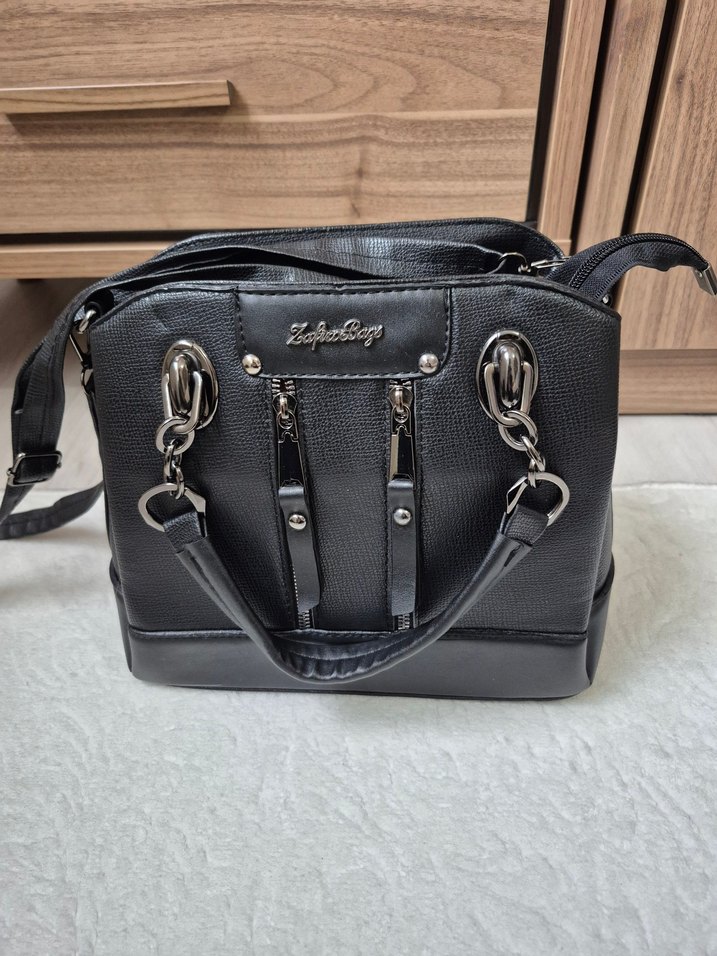 Siyah Parlak Deri Tokalı Kadın Çanta
