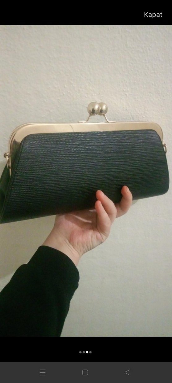 Siyah Parlak Deri Tokalı Kadın Portföy Çanta
