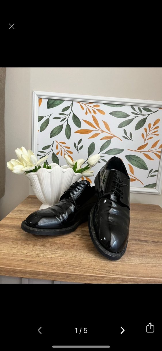 Siyah parlak yüzeye sahip, hafif çiçek desenli klasik erkek ayakkabısı. Kauçuk tabanlı, ofis için uygun ve farklı bir counterculture tarzı sunar.
