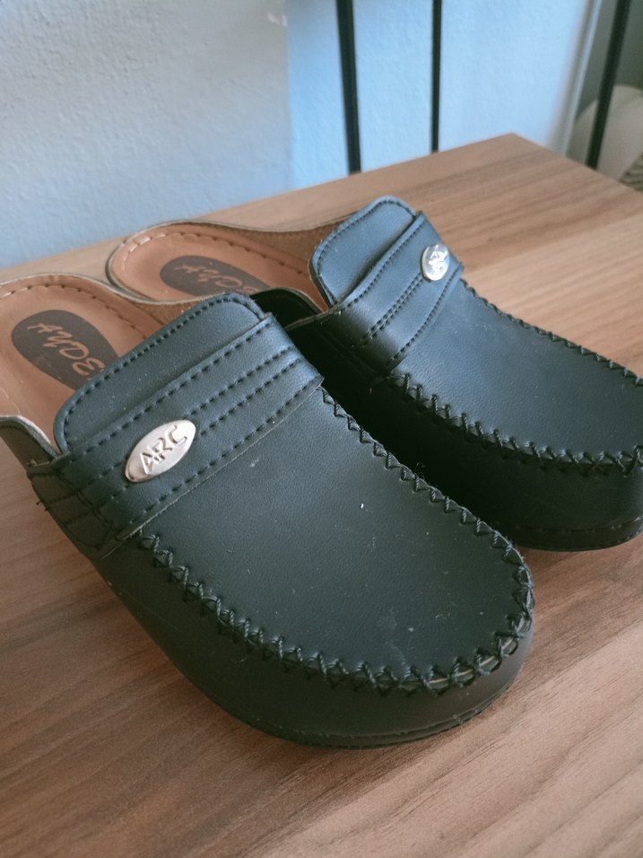 Siyah parlak dolgu topuklu kadın terlik, tokalı detaylı, yılan desenli ve kauçuk malzemeden günlük kullanıma uygun.