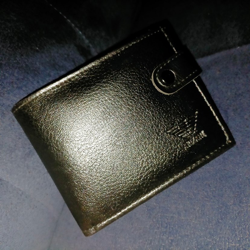 Parlak siyah renkte, çıtçıtlı kapaklı biker tarzı erkek cüzdanı. İş hayatına uygun sade tasarım.