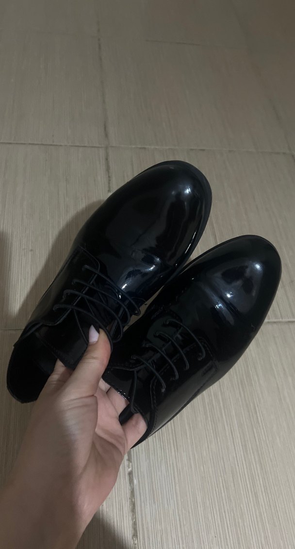 Siyah parlak erkek klasik ayakkabı, kauçuk tabanlıdır ve iş ortamına uygundur. Desensiz tasarımı ile trend belirleyenler için idealdir.