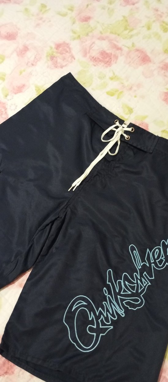 Siyah parlak yüzme şortu, bol kesim ve Bağcıklı ön kısmı ve hafif logo deseni bulunur. Plaj için uygundur.