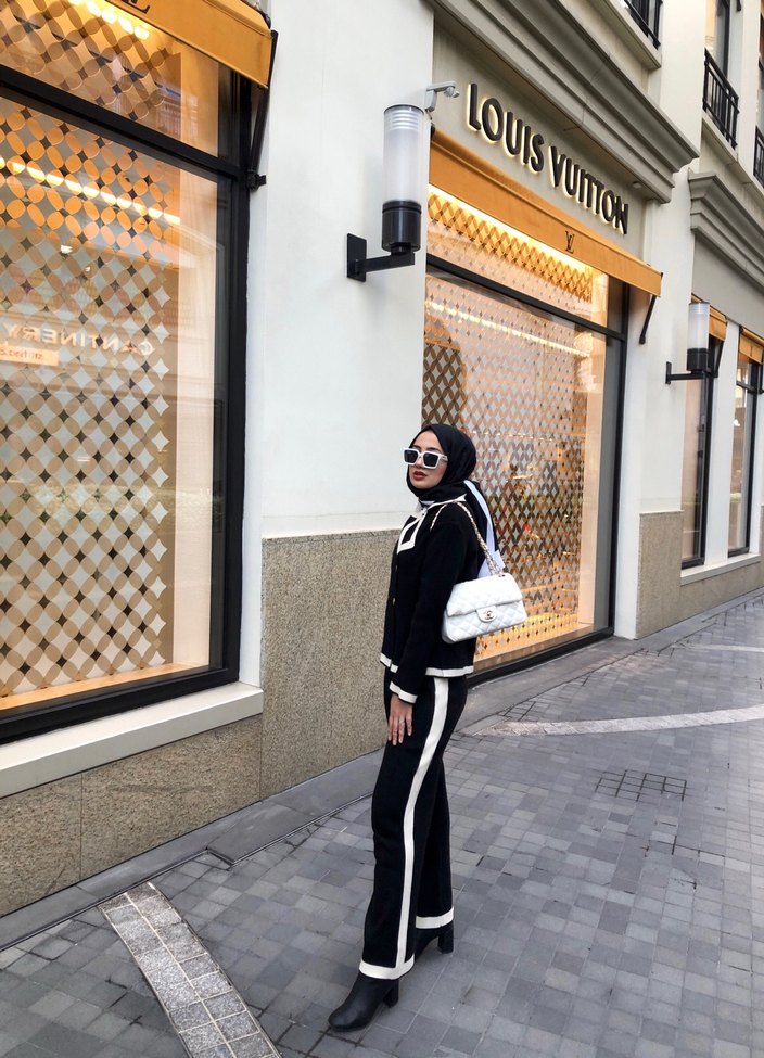 Siyah Parlak Etnik Desenli Kadın Takım