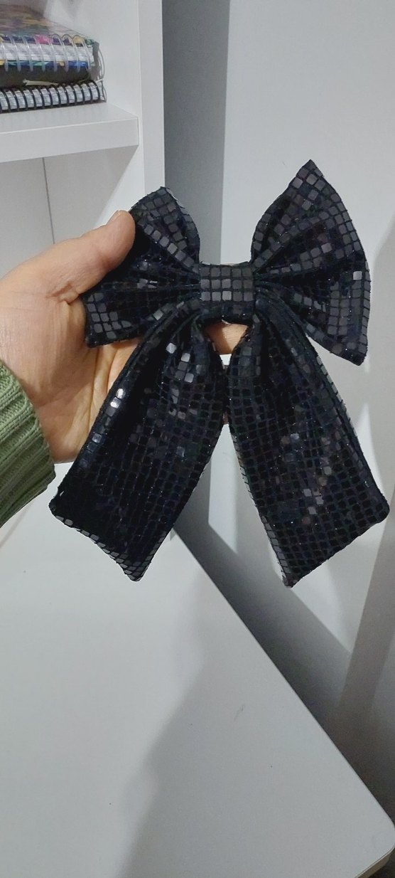 Siyah Parlak Fiyonk Kadın Saç Aksesuarı