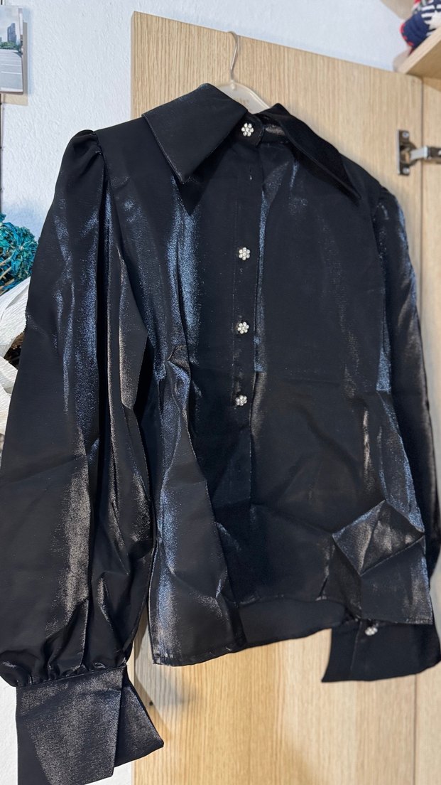 Siyah, parlak, ipeksi kumaş hiç kullanılmadı sıfır paketinde