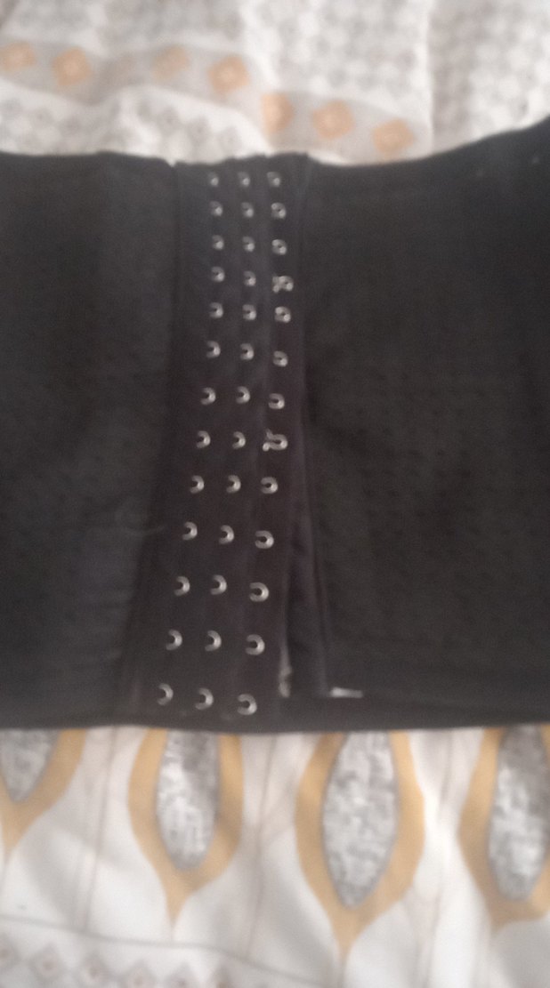 Parlak siyah renkte, midi boy ve desen içermeyen bu sıkı oturan hemşire korsesi, ayarlanabilir çoklu kanca kapama özelliğine sahiptir.