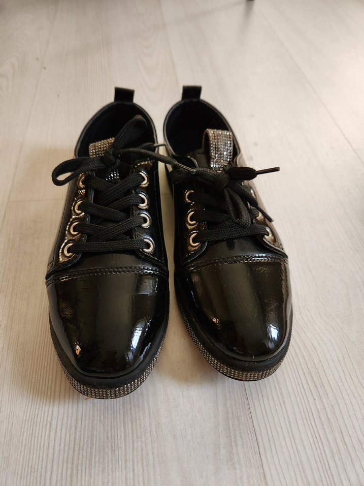 Siyah parlak şık ve günlük kullanım için uygun.