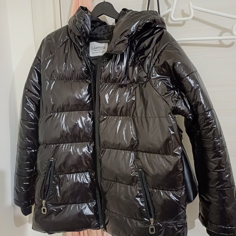 Siyah Parlak Kadın Kışlık Mont