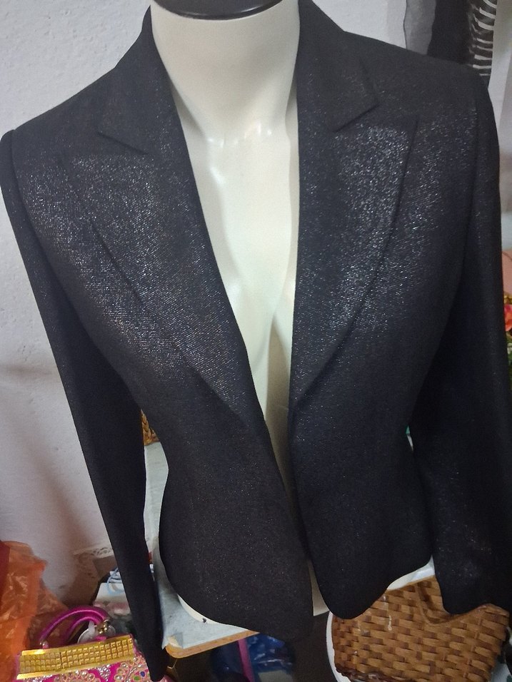 Siyah Parlak Kadın Ofis Blazeri ceket.