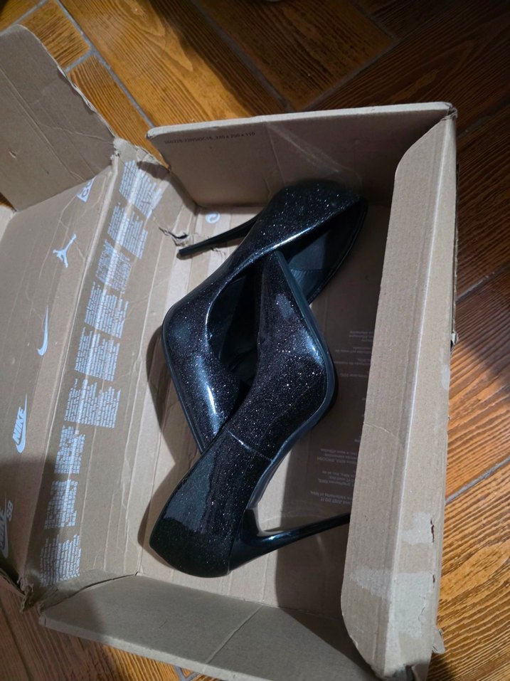 Parlak siyah kauçuk malzemeden yapılmış, ofis için uygun gösterişli gotik tarzda yüksek topuklu kadın stiletto. ✨ içlerinde dökülme vardır,topuğu yüksektir