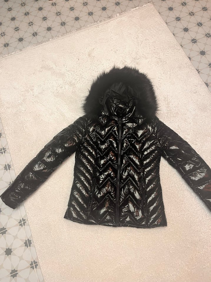 Siyah Parlak Kürklü Kadın Kışlık Mont