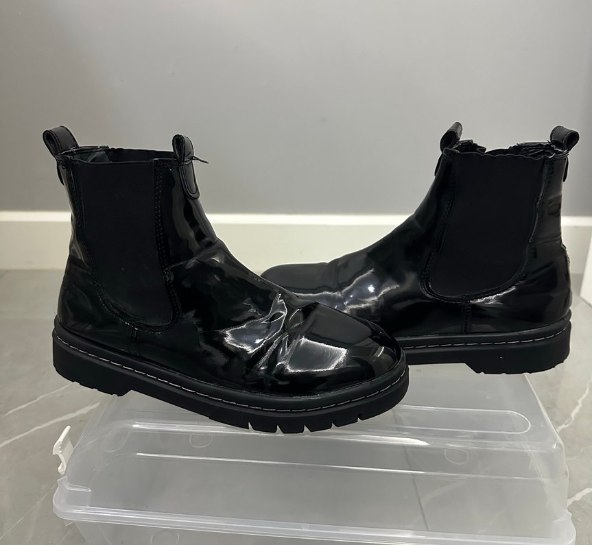 Siyah Parlak Lastik Topuklu Gotik Kadın Bot