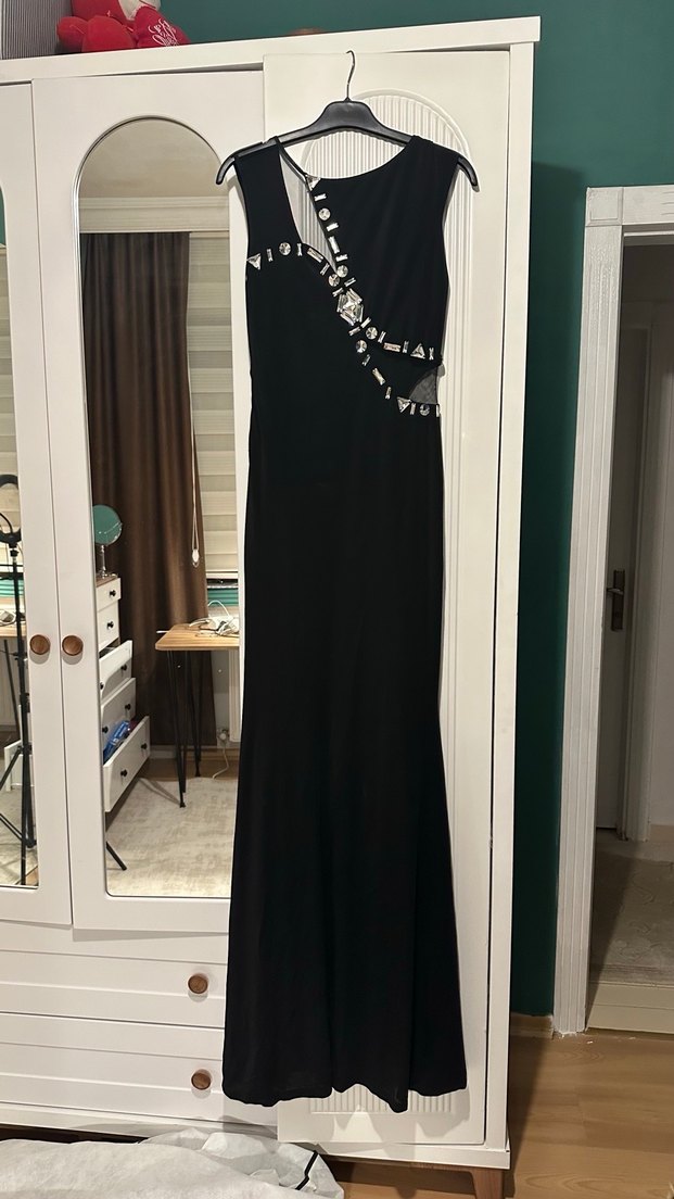 Düğün için 1 kere giyildi. Siyah parlak kumaştan yapılmış, doğum sonrası için tasarlanmış, fermuarlı ve kesimli yakalı, baskılı midi uzunlukta ceket. Ofis ve sokak stiline uygundur.