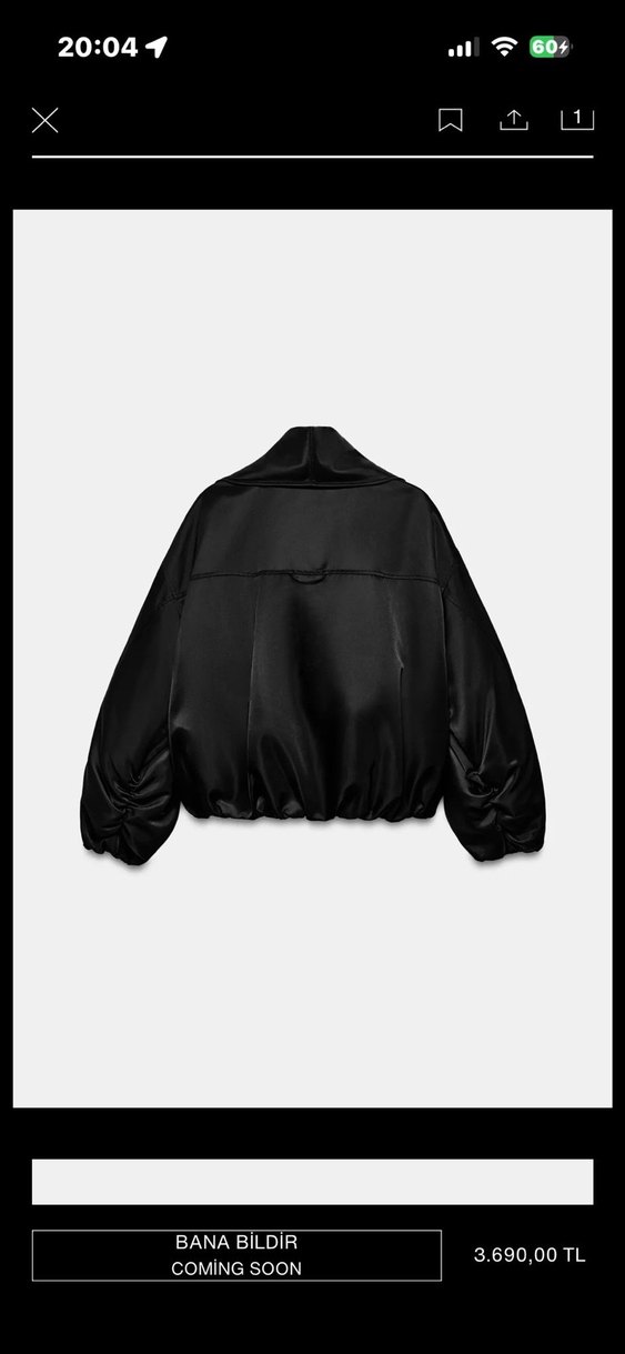 Uzun kollu, yüksek yakalı ve düğmeli bu kadın ceketi, ipeksi kumaştan üretilmiş olup parlak siyah renktedir. Midi boyu ve bol kesimiyle ofis için uygundur. ✨