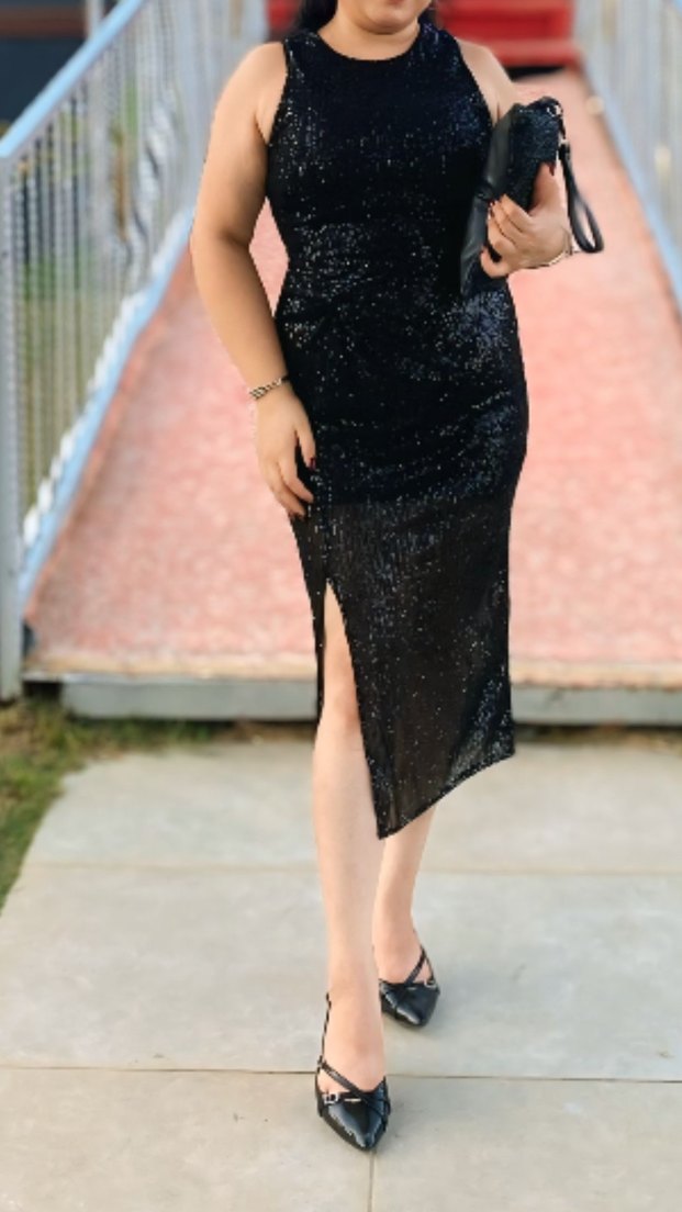 Siyah, parlak yılan desenli midi abiye elbise, V yakalı ve askılıdır. Gösterişli ve cesur gotik tarzıyla romantik akşamlar için uygundur.