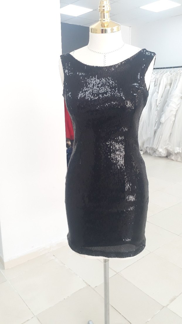 Siyah Parlak Mini Abiye Elbise
