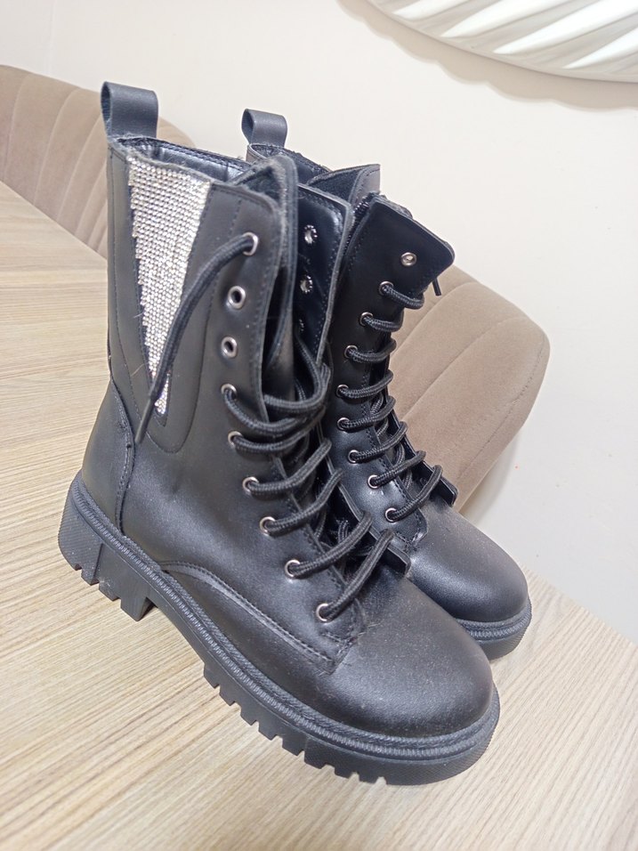 Siyah Parlak Nakışlı Kadın Goth Bot
