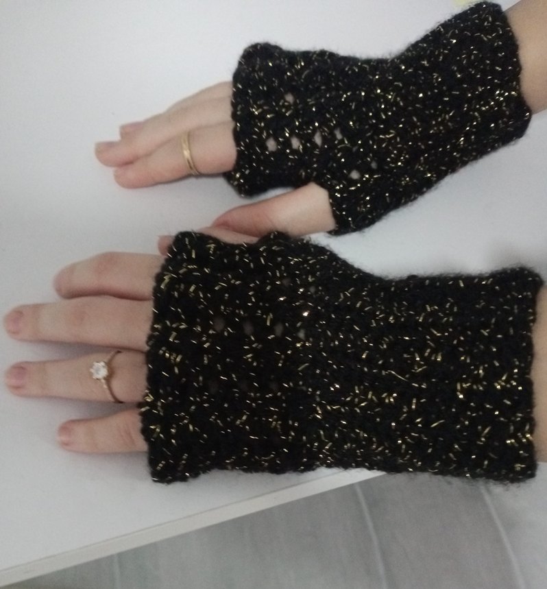 Siyah, parlak detaylı örgü kadın eldiven, rahat ve şık gotik tarz için uygundur. ✨