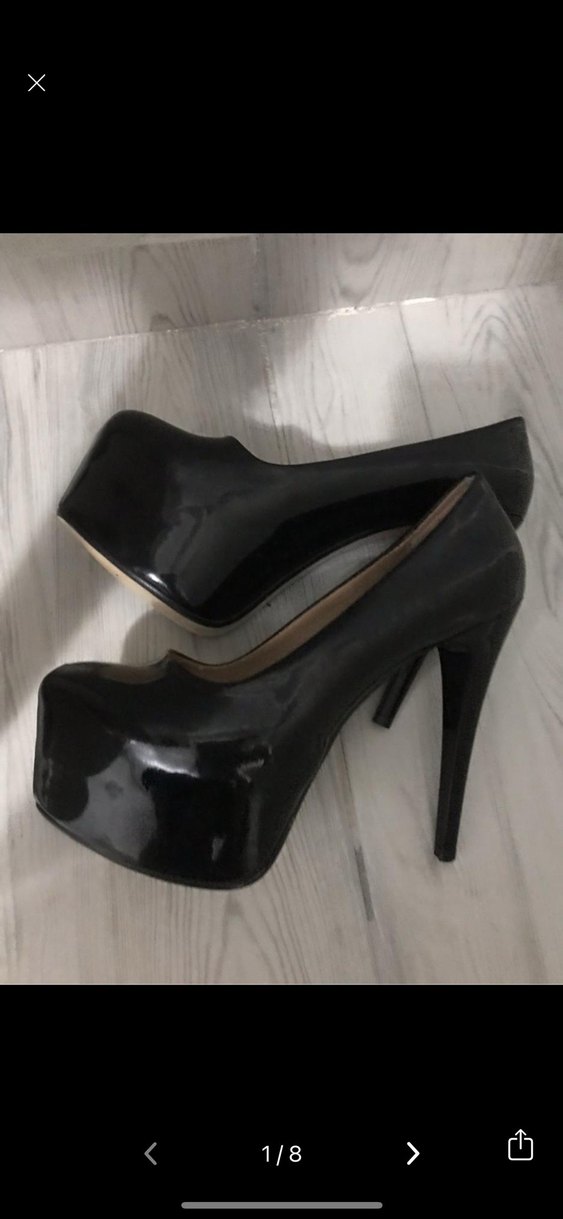 Siyah Parlak Platform Topuklu Kadın Ayakkabı