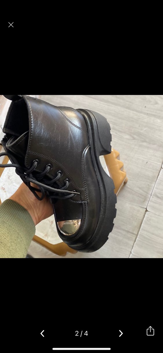 Siyah parlak platform topuklu, tokalı, kauçuk malzemeden kadın botları. Desensiz, sokak modası goth tarzına uygun şık tasarım.