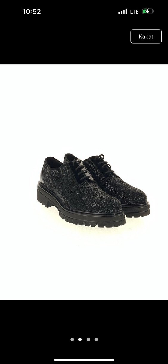 Siyah parlak platform topuklu, düz tasarımlı kadın klasik ayakkabı. Ofis ve günlük kullanıma uygun, dayanıklı kauçuk malzemeden üretilmiştir.