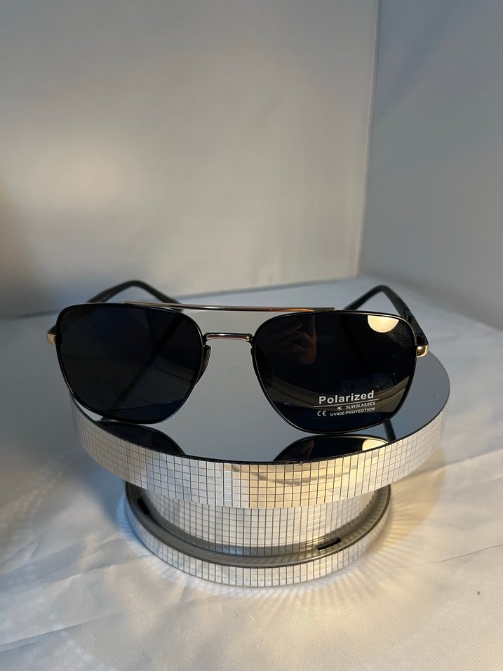 Siyah çerçeveli, polarize lensli güneş gözlüğü. Şeffaf detaylar klasik ve zarif bir görünüm sunar. ️