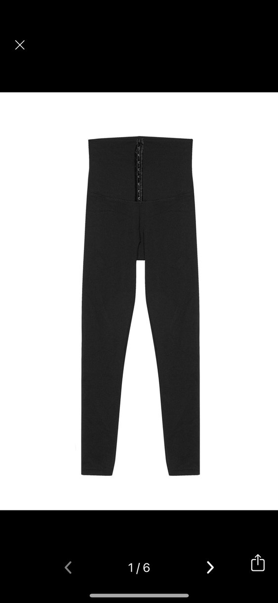 Siyah parlak rubber malzemeden, midi boyda, vücuda oturan tayt. Günlük kullanım için zahmetsiz şıklık sunar, goth athleisure tarzına uygundur.
