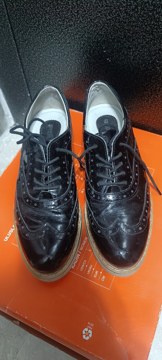 Siyah Parlak Rugan Kadın Oxford Ayakkabı