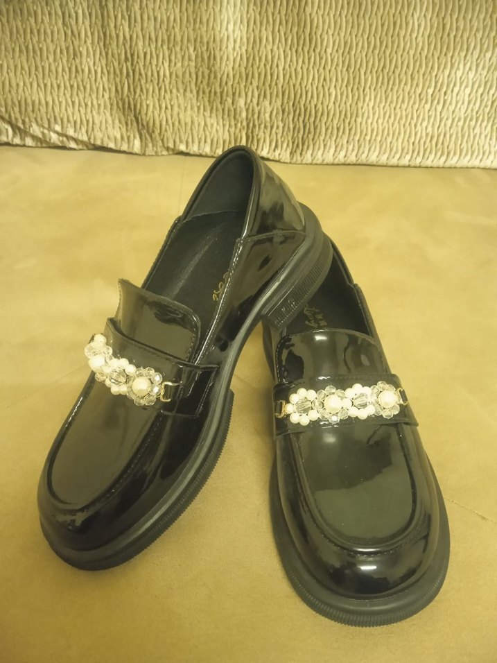 Siyah Parlak Rugan Tokalı Kadın Loafer Ayakkabı