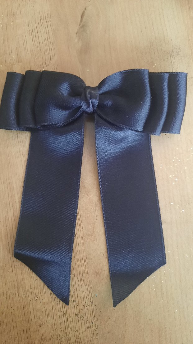 Kadınlar için parlak siyah saten kumaştan yapılmış fiyonk şeklinde saç aksesuarı, gotik Paris tarzını yansıtır. çift citt 3 kat siyah fiyonk toka